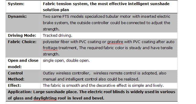電動遮陽百葉FTS電動天棚簾產品結構示意圖