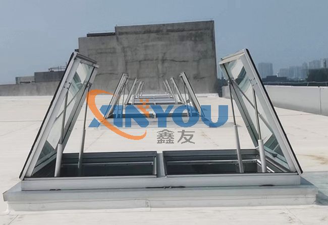 此類天窗有三種控制方式:通用控制方式、智能控制方式、智能網絡控制方式。以上控制方式均可消防聯動控制,與消防報警連接。適用于采光為主必要時開啟的大型生產車間、大廳、體育館等。