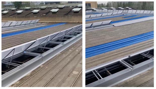 鑫友承接安徽名創實業A#廠房改造排煙項目已經完成安裝,售后安裝人員于8月29日撤場,采購產品有一字型電動排煙天窗、固定采光天窗及配套產品。