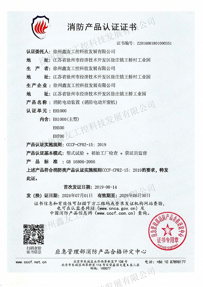 消防產(chǎn)品認(rèn)證證書EH1000...