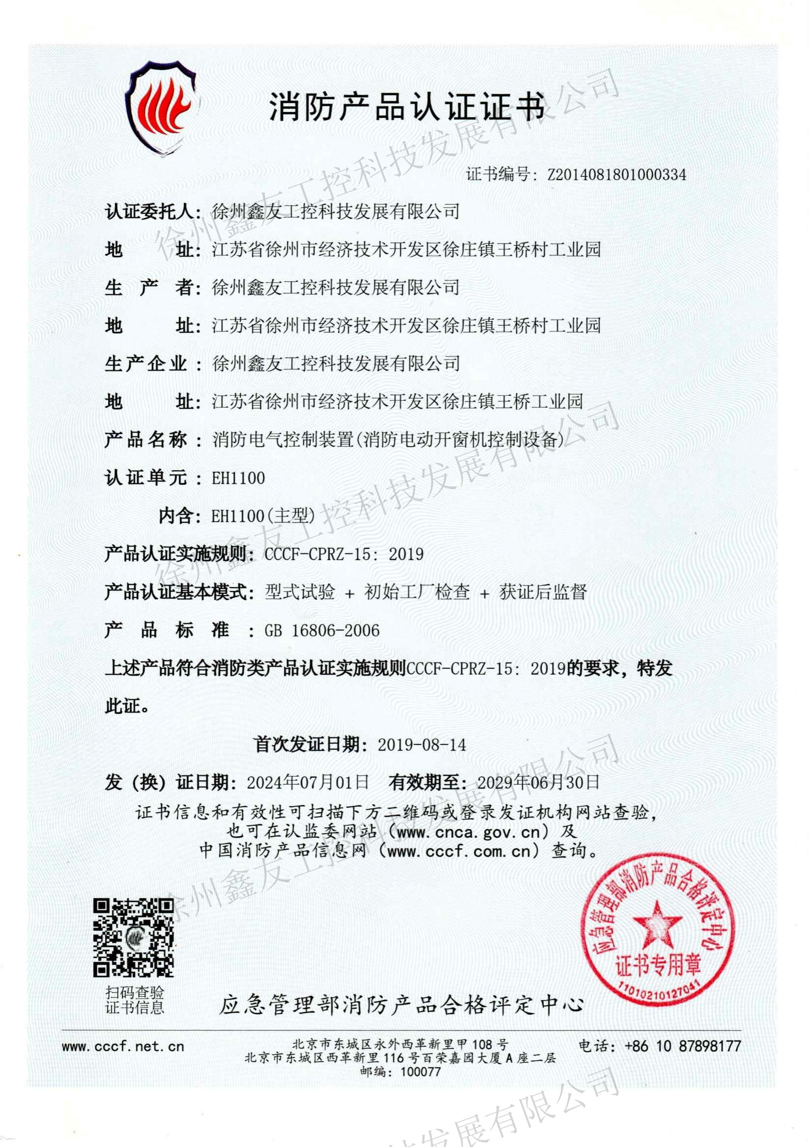 消防產(chǎn)品認(rèn)證證書EH1000EH500EH700